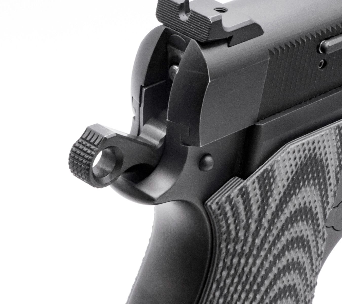 The Tank Tread Commander Hammer is a modern take on the classic ring hammer design. The checkered cocking surface gives your thumb positive traction, making it easier to manipulate the hammer during administrative handling or when lowering it. More importantly, the hammer features an over-cocking limit pad and optimized spur angle that work together to prevent hammer bite—a common issue with stock Hi-Power and SA-35 hammers. The hammer hook geometry is specifically matched to the included Mk 1 Balanced Sear, so you can drop it in without stoning or filing engagement surfaces.