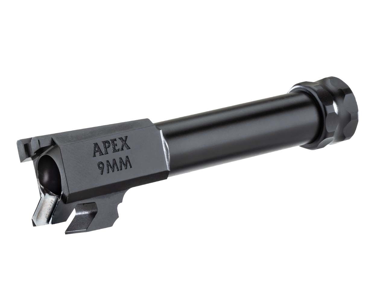 The Apex 9mm Threaded Barrel lets you attach a suppressor or compensator in seconds. It’s machined from premium heat-treated, button-rifled steel blanks with a 1:10” twist rate. The undercut thread intercept accommodates a wide variety of muzzle devices without binding or alignment issues. Finished with Black ArmorLube for long-term corrosion resistance and smooth cycling, this barrel is built to hold up to thousands of rounds of defensive or practice ammo. Direct drop-in for Hellcat and Hellcat Pro models.