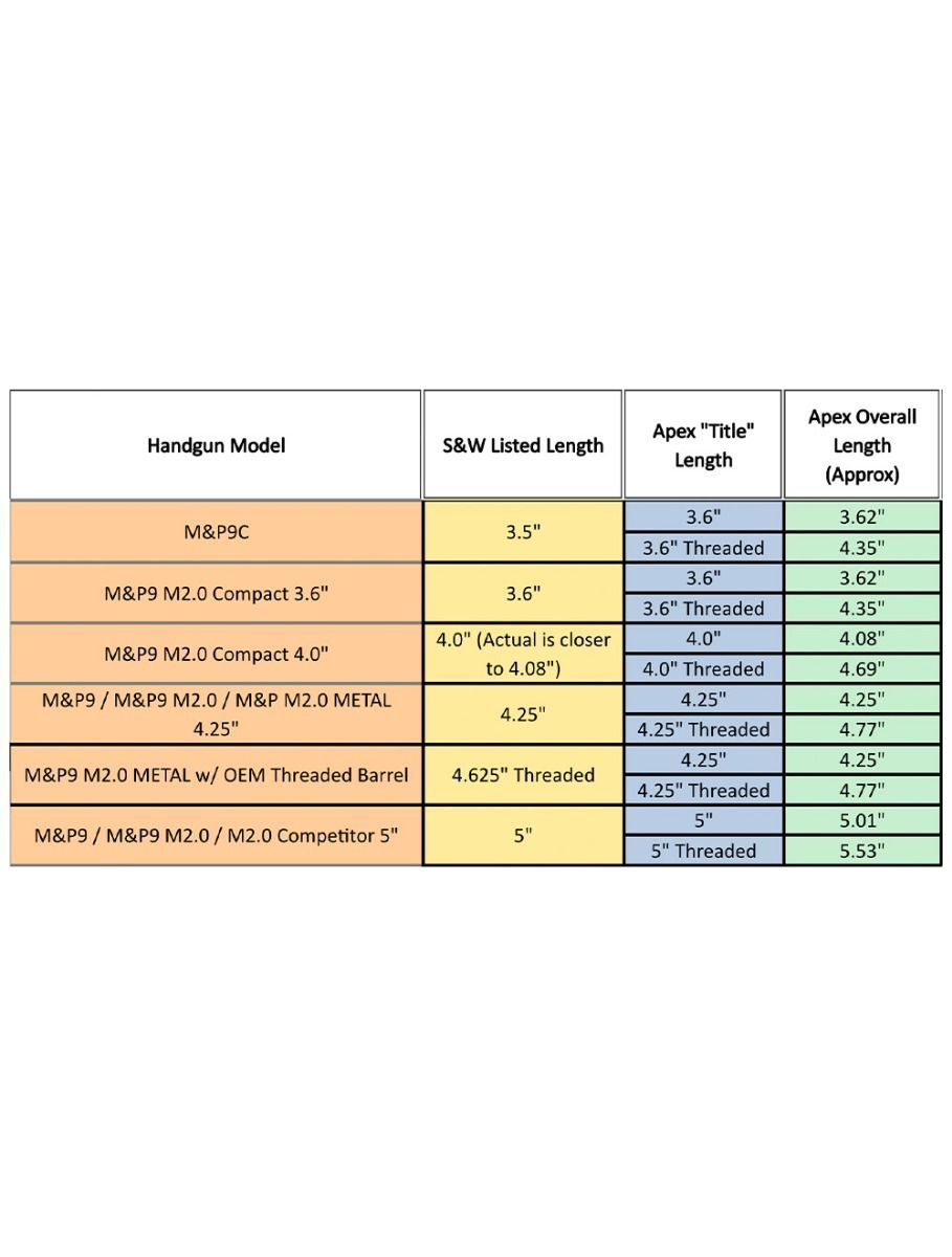 Important fitment note: If your M&P slide has a Loaded Chamber Indicator (LCI), you will need to either remove it or install the Apex No Profile Loaded Chamber Indicator Block (sold separately). The barrel is not compatible with the stock LCI block in place. This is a simple swap that keeps your slide profile clean and functional.