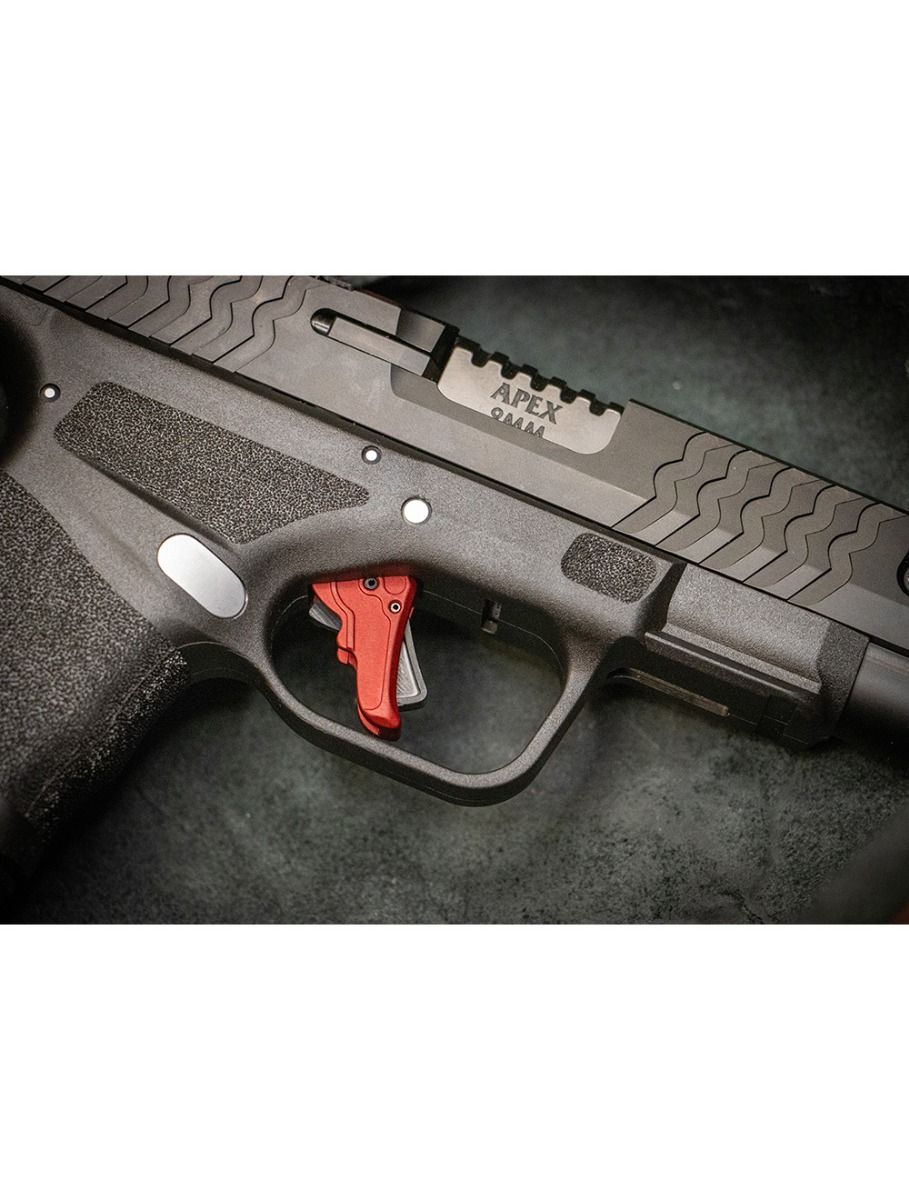 Save big on performance without sacrificing function. This Blemish Action Enhancement Trigger for Springfield Hellcat and Hellcat Pro delivers the same smooth, crisp pull and reduced reset you expect from Apex, all at a discounted price of $65. The only difference is the finish: a dark red matte color caused by a vendor anodizing error. Mechanically, each trigger measures within our standard tolerances, so you get the same reliable performance for concealed carry, range practice, or hunting sidearm use.