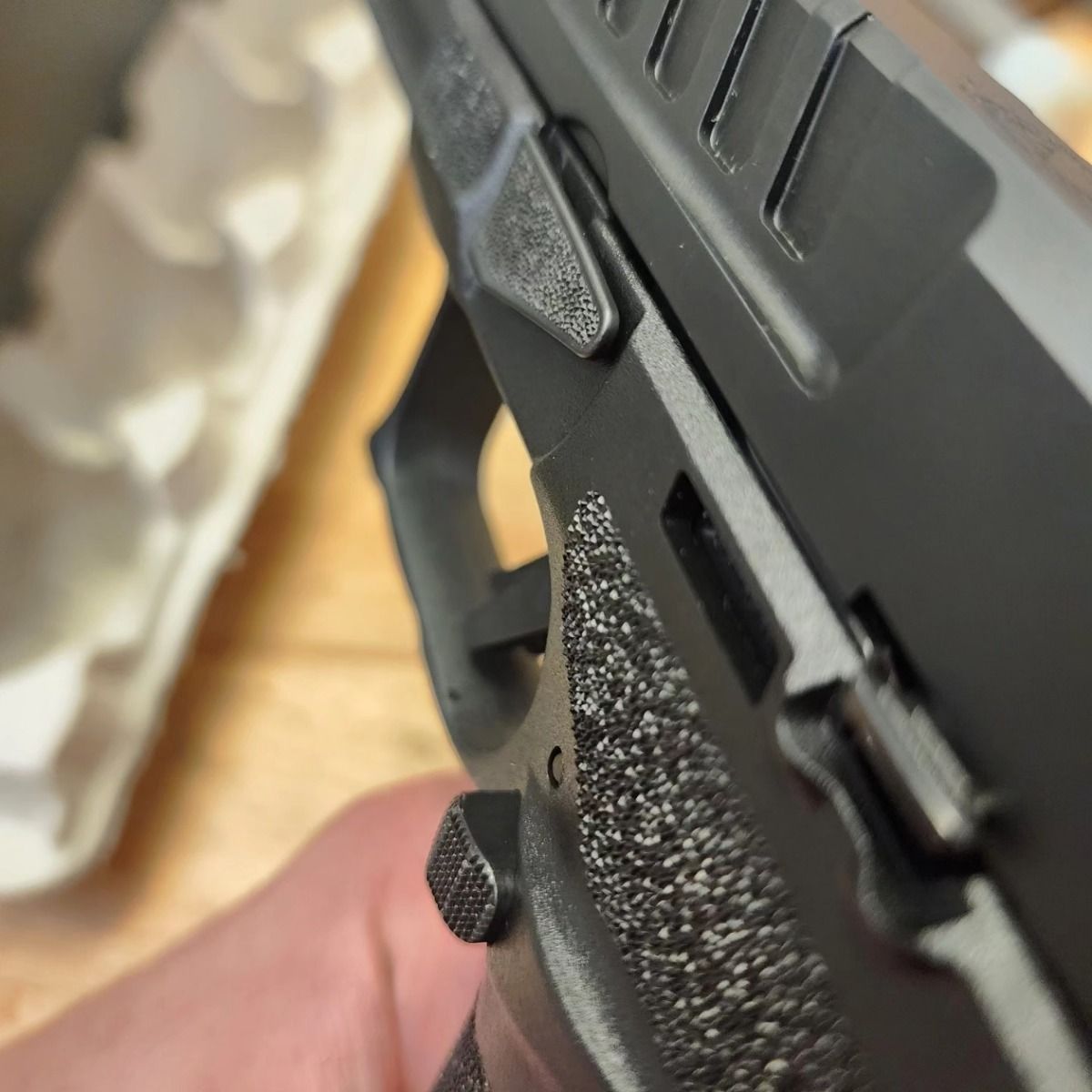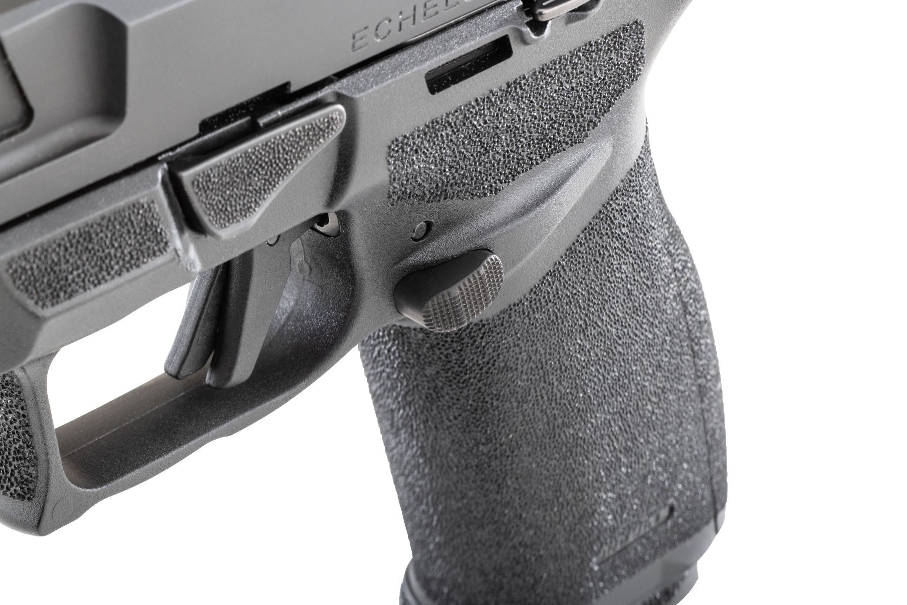 This extended single sided magazine release from Apex is built specifically for the Springfield Echelon and Echelon Compact. If you run a competition stage or carry concealed every day, you know that every fraction of a second matters when you need a fresh mag in the gun. This part cuts down the distance your thumb has to travel to drop a magazine — it extends .060″ from the highest point of the grip shield feature on the frame, which means less stretching and more speed when you’re under pressure.