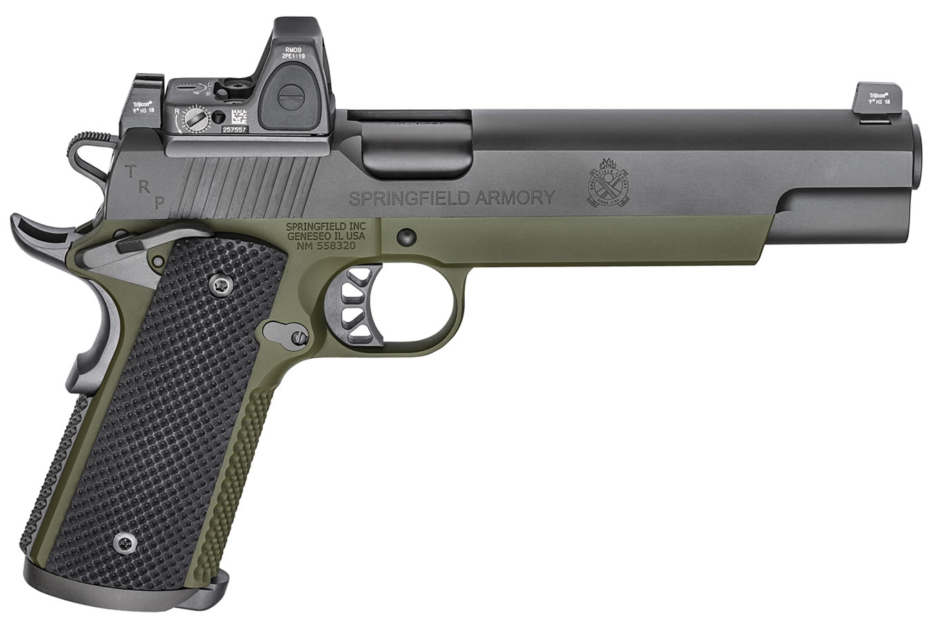 • Package includes: Springfield 1911 TRP 10mm Long Slide pistol, factory-installed Trijicon RMR reflex sight, two 8-round magazines, cable lock, owner’s manual, and Springfield Armory range bag.