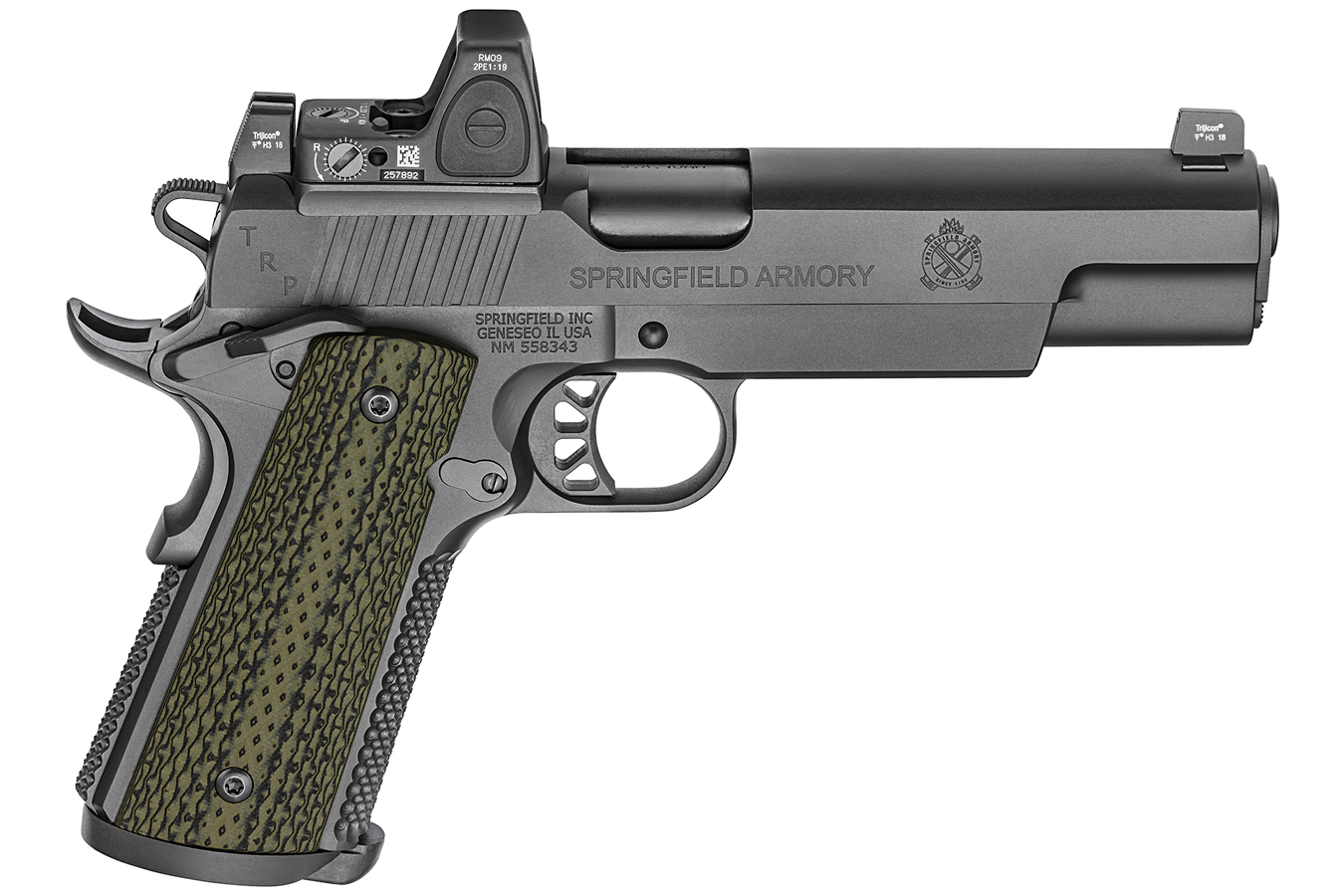 Springfield Armory builds the TRP (Tactical Response Pistol) line to exceed the expectations of law enforcement and competitive shooters. Chambered in 10mm Auto, this model delivers substantially more energy than standard .45 ACP loads, making it an excellent choice for defensive use against large predators or for high-performance target shooting. The package includes a factory-mounted Trijicon RMR Type 2 reflex sight with a 3.25 MOA red dot, co-witnessed iron sights, and a padded range bag with magazine pouches. The slide is milled specifically for the RMR, ensuring a low-profile mounting system that holds zero under recoil. Every springfield 1911 trp 10mm with trijicon rmr reflex sight and range bag is assembled and test-fired at the Springfield Armory facility in Illinois.